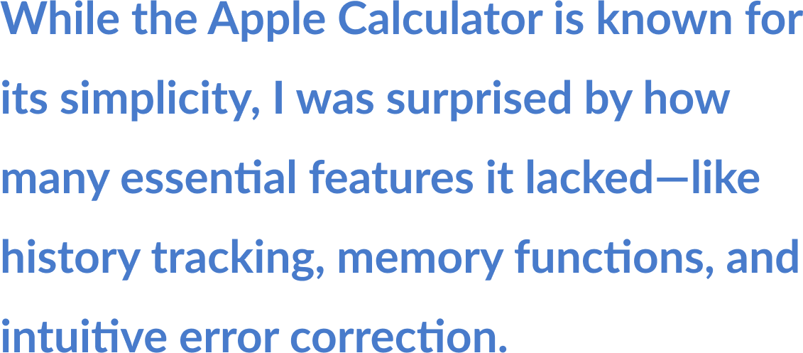 I spoke with regular calculator users to understand their expectations, frustrations, and experiences with the Apple Calculator, aiming to identify usability gaps and missing features.